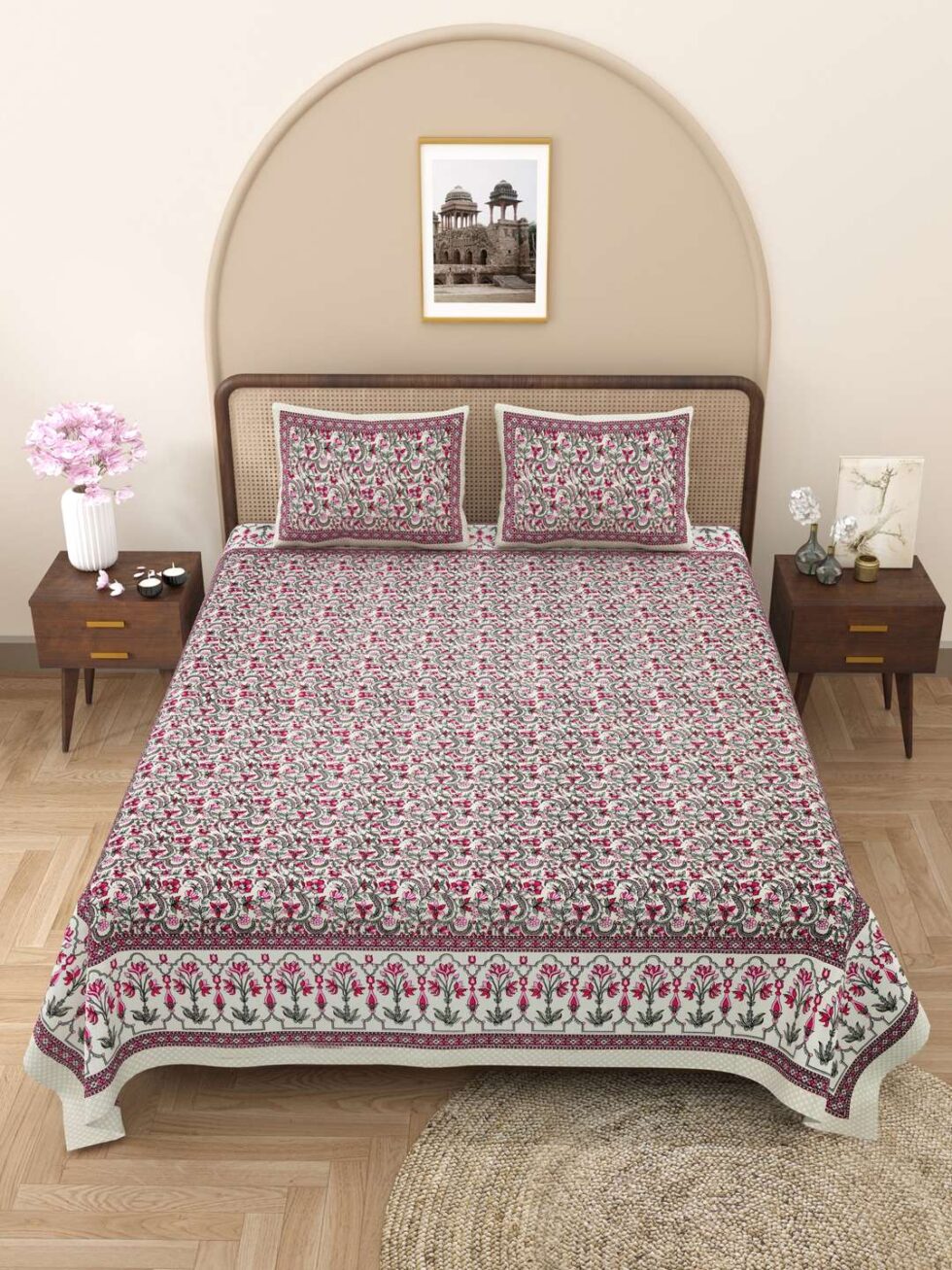 100% Pure Cotton Traditional Printed Bedsheet for Double Bed King Size Bedsheet with 2 Pillow Covers