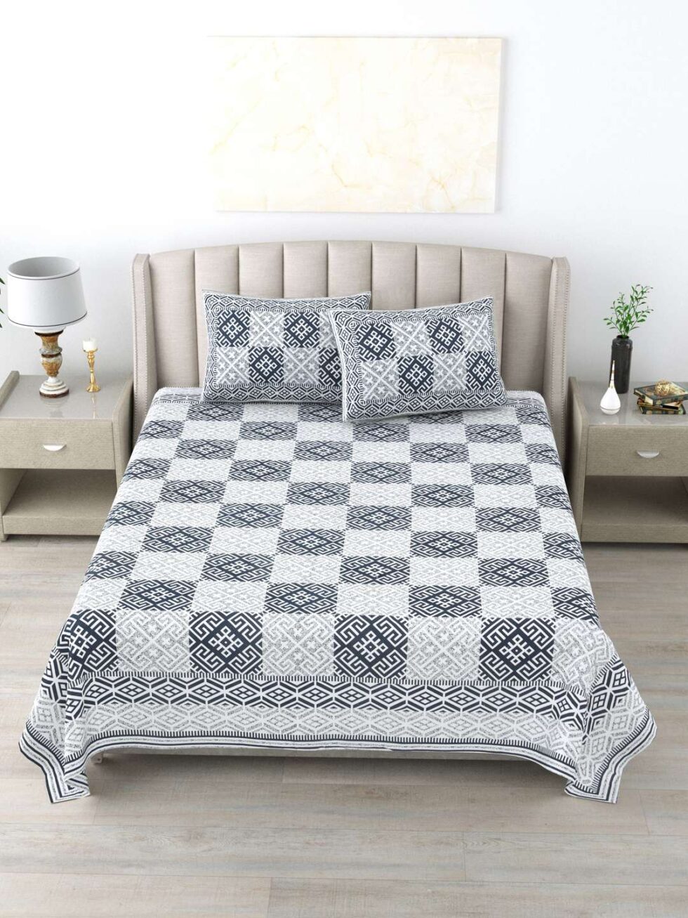 100% Pure Cotton Traditional Printed Bedsheet for Double Bed King Size Bedsheet with 2 Pillow Covers